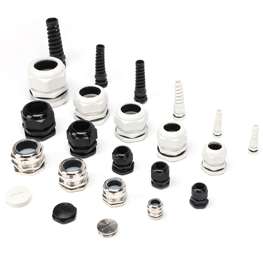 Nylon waterproof cable connectors – Lightweight, cost-effective, and widely used in general electrical installations.